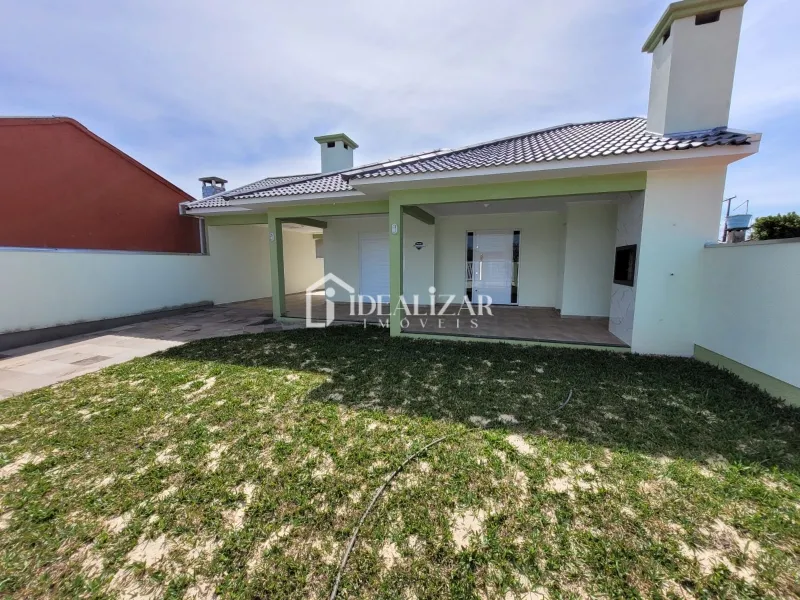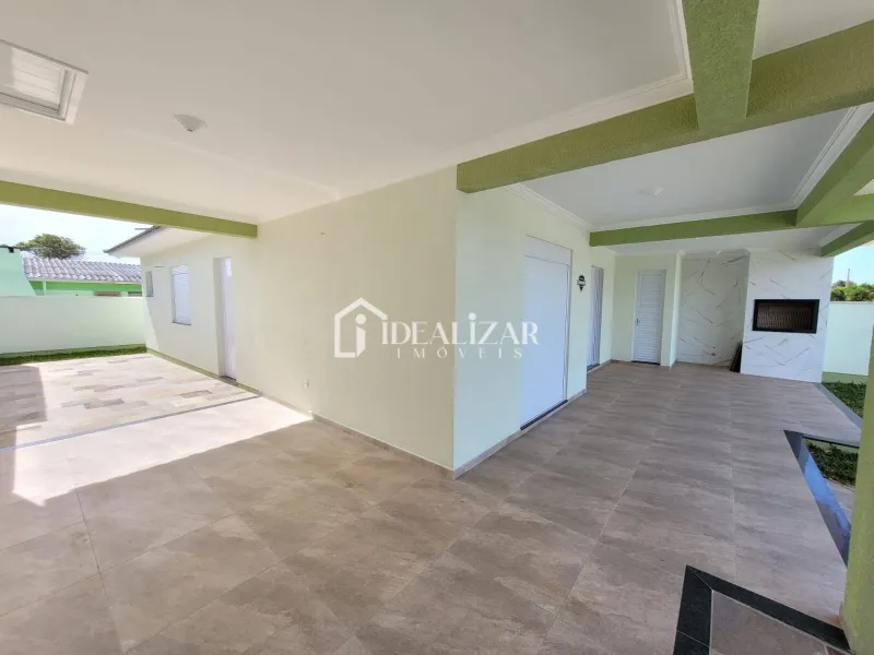 Casa nova em Areias Brancas, com laje de concreto, piso porcelanato, aberturas de madeira nobre, dispõe de 3 dormitórios sendo 1 suíte, sala de estar/jantar, cozinha, área de serviço, 1 banheiro social, 1 lavabo, churrasqueira com espaço gourmet, abrigo coberto para 1 carro, 138 m² de área construída.