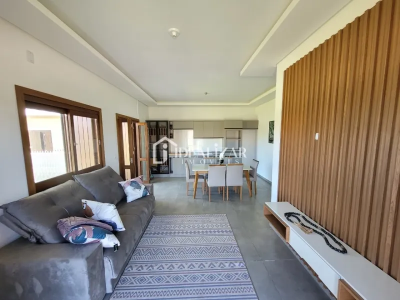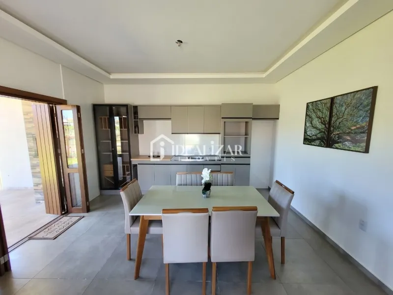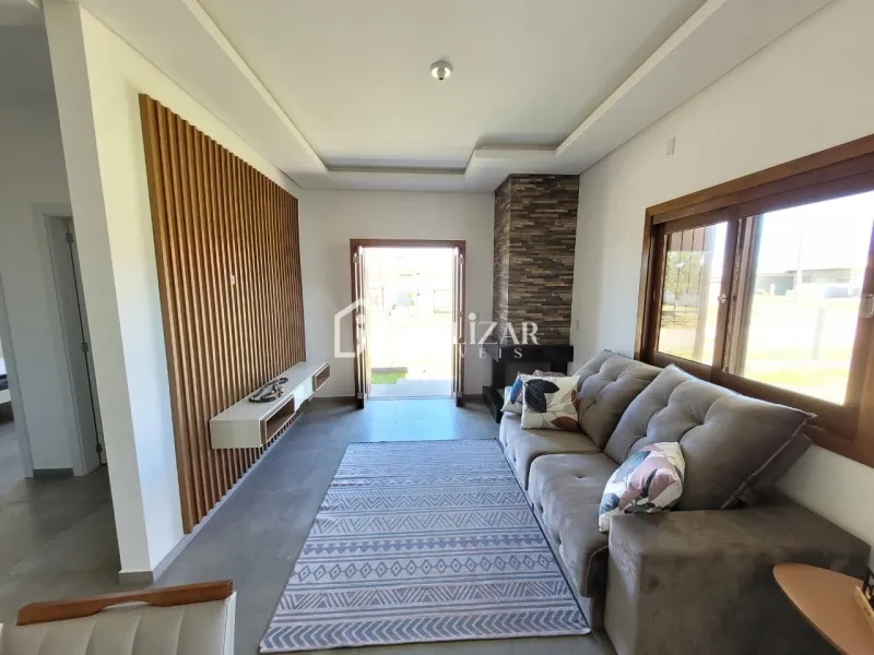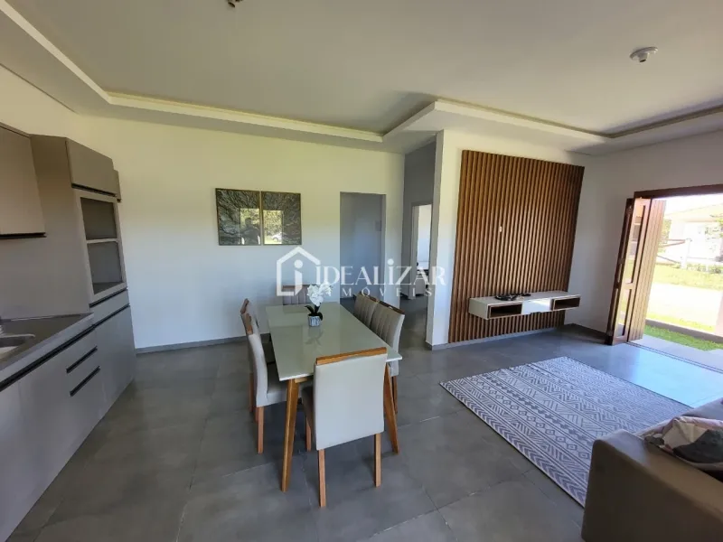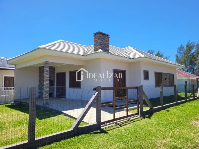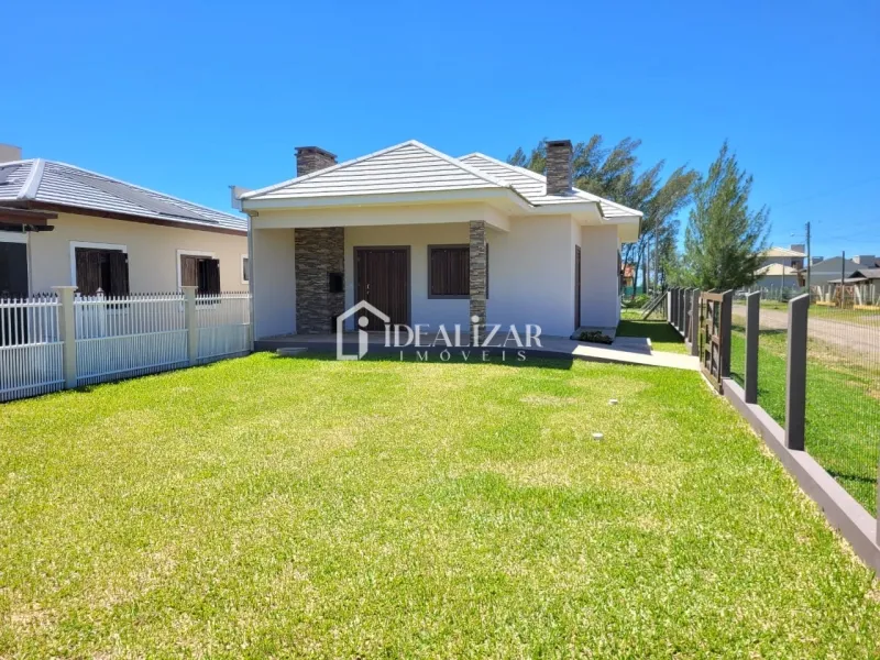 Casa nova Mobiliada na balneário Atlântico, apenas 200 metros do mar, casa com 3 dormitórios sendo 1 suíte, sala de estar/jantar, cozinha, área de serviço, 1 banheiro social, abrigo coberto para 1 carro, 100 m² de área construída, terreno mede 10 x 30 metros.