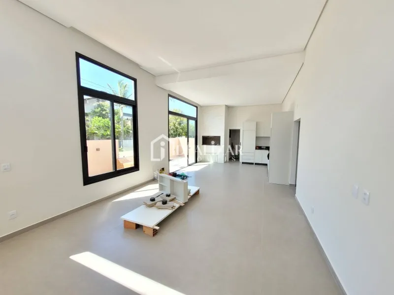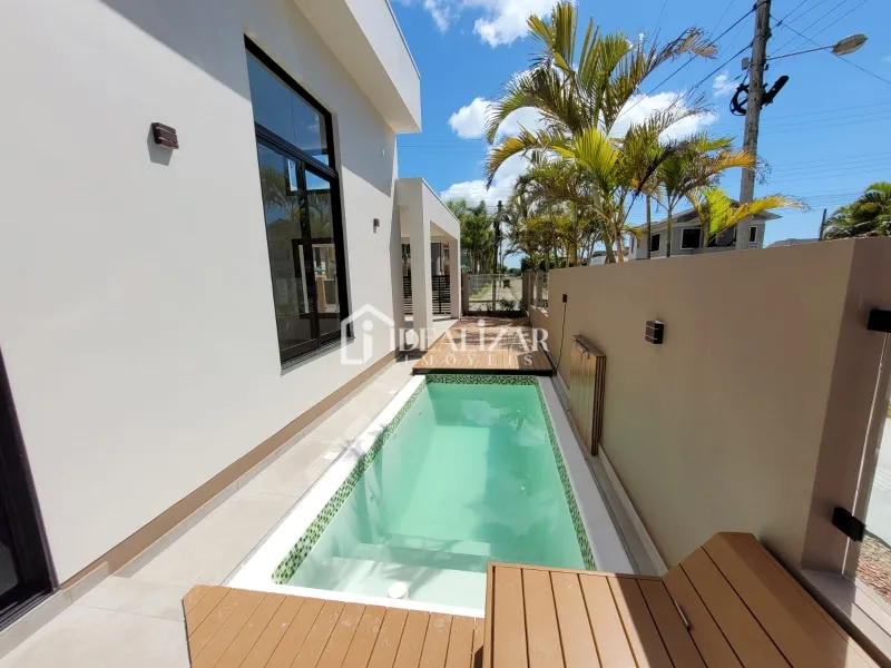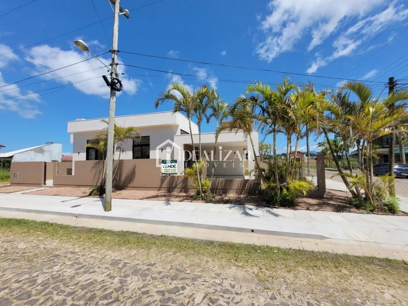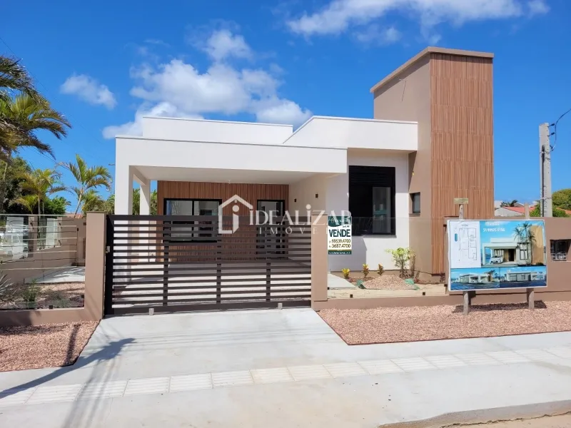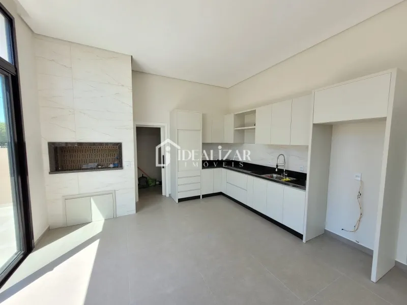Casa nova no bairro Jardim Raiante, de esquina, com pé direito duplo, dispõe de 3 dormitórios sendo 1 suíte, sala de estar / jantar, cozinha, área de serviço, 1 banheiro social, abrigo coberto para 1 carro, piscina com aquecimento solar, espera para água quente, 146 m² de área construída.