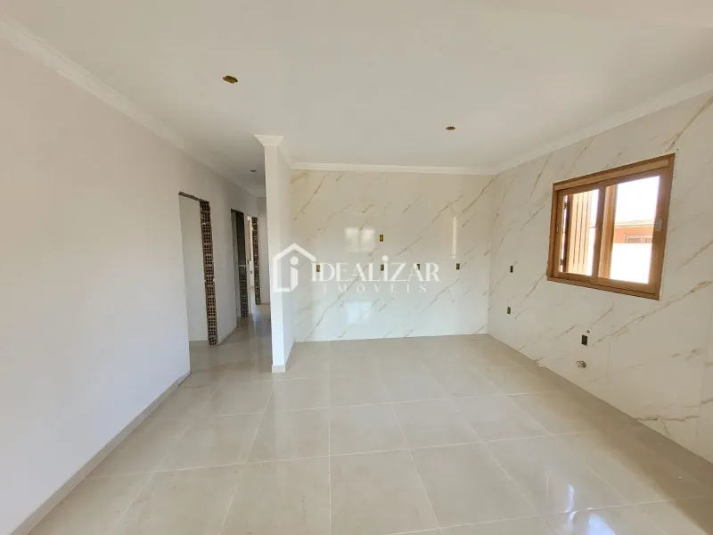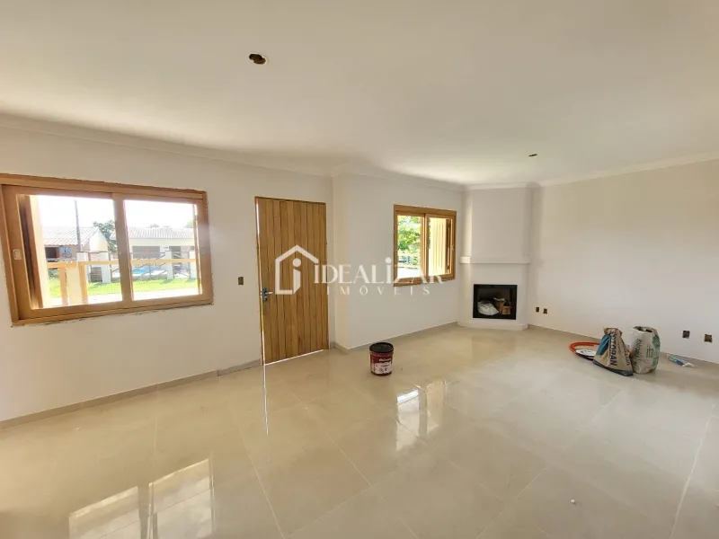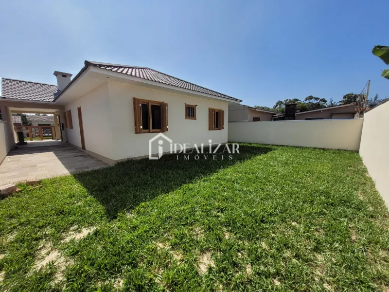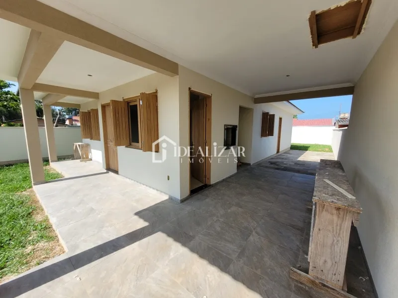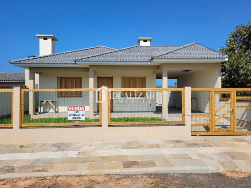 Casa nova, em Areias Brancas, com laje e telhas de concreto, aberturas de madeira nobre, piso porcelanato, 3 dormitórios sendo 1 suíte, sala de estar/jantar, cozinha, área de serviço, 1 banheiro social, abrigo coberto para 1 carro, churrasqueira, lareira, 127 m2 de área construída