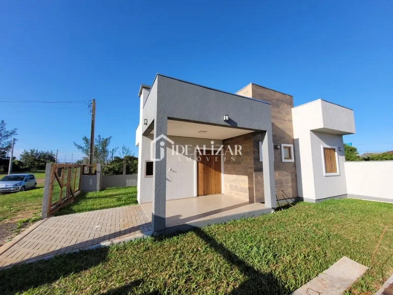 Bela casa nova á venda em Arroio do Sal, no bairro Sereia do Mar, apenas 300 metros do mar, dispõe de 3 dormitórios, sendo um suíte, um banheiro social, cozinha, sala de estar e jantar, área de serviços aberta, abrigo para o carro, churrasqueira, com laje de concreto, piso porcelanato, pátio fechado. Este imóvel está apto a financiamento bancário. Vem conferir mais.