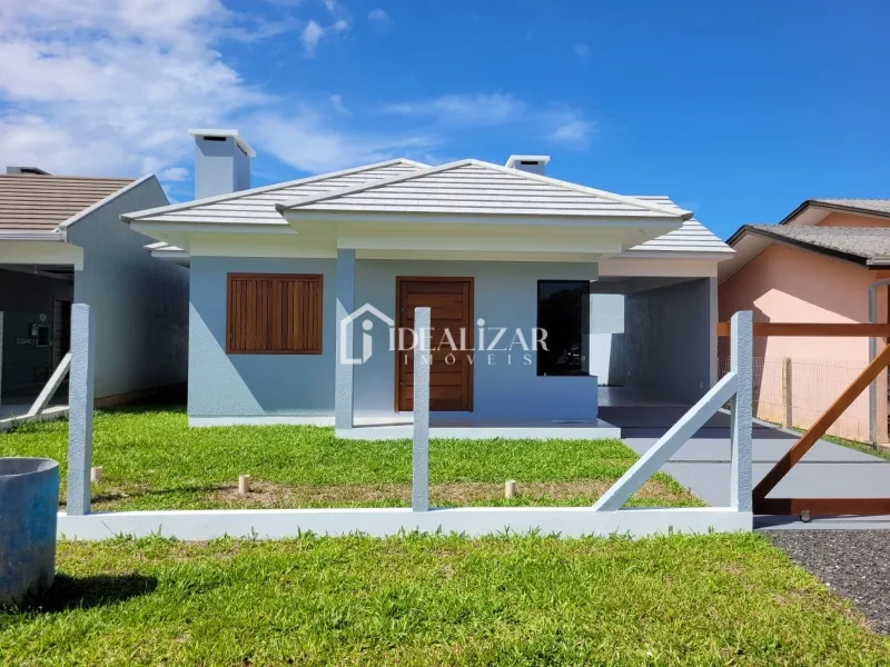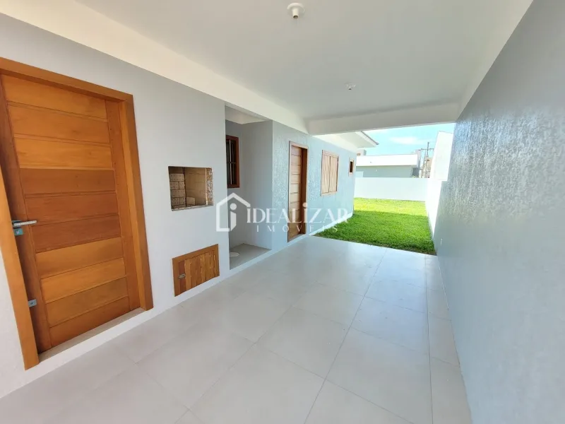 Casa nova na Praia de Figueirinha, apenas 550 metros do par, posição solar sul, casa com laje de concreto, piso porcelanato, 3 dormitórios sendo 1 suíte, sala de estar/jantar, cozinha, mais 1 banheiro social, área de serviço, abrigo coberto para 1 carro, churrasqueira, 103 m² de área construída, terreno medindo 12 x 25 metros, pátio fechado.