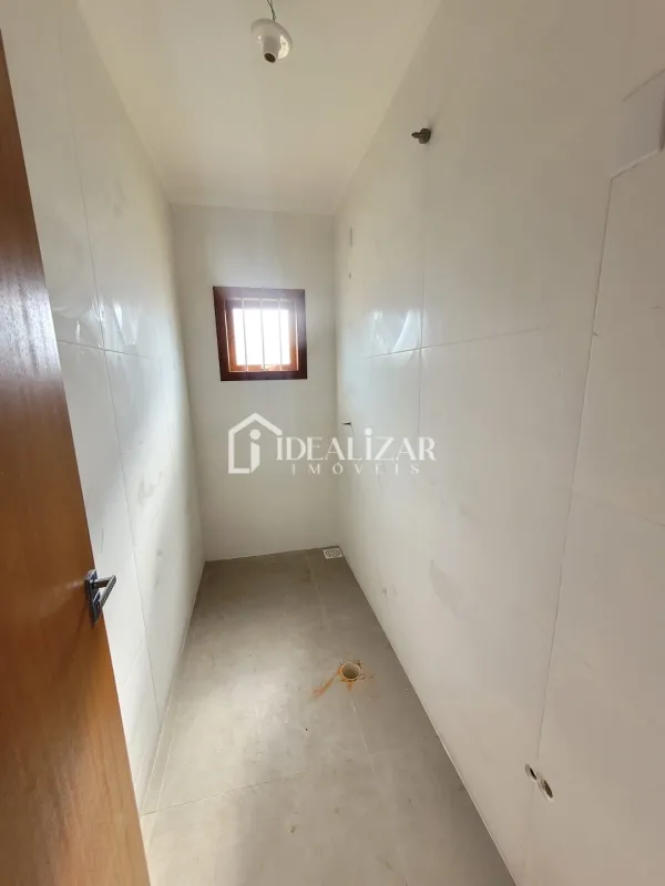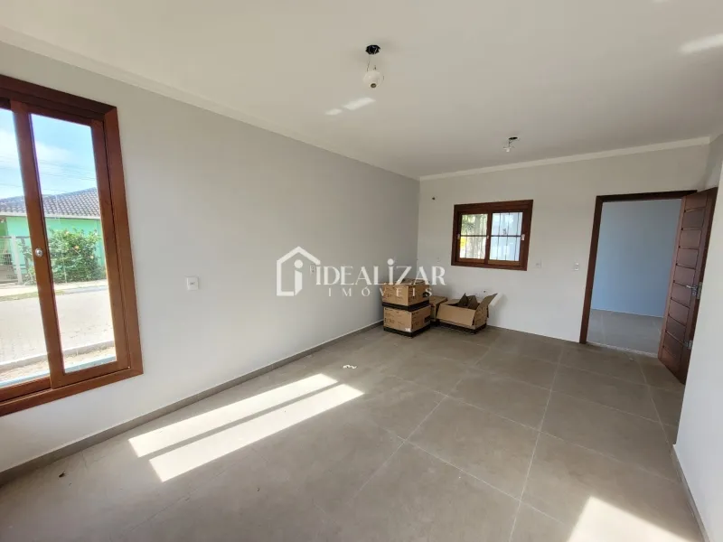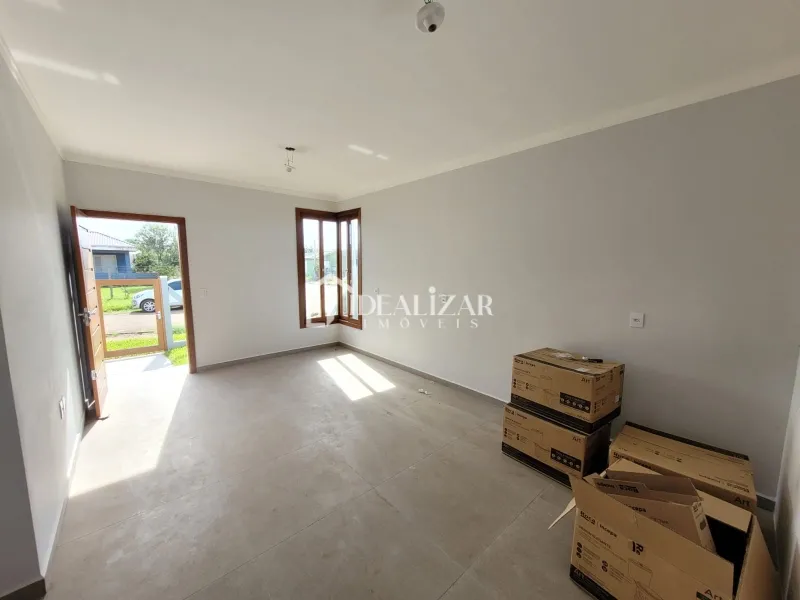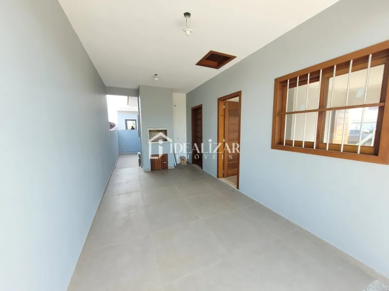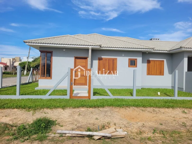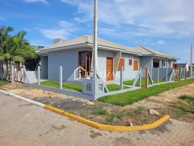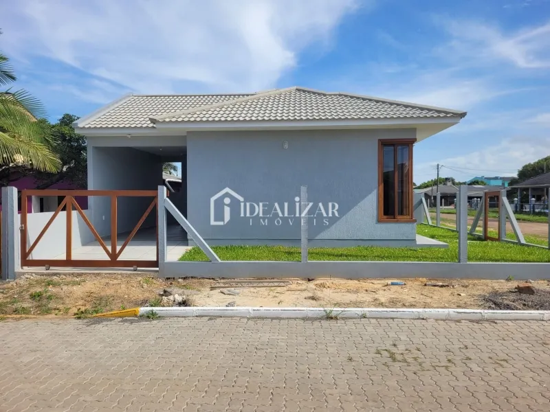Casa nova de esquina na Praia de Figueirinha, a 450 metros do mar, dispõe de 3 dormitórios sendo 1 suíte, sala de estar/jantar, cozinha, área de serviço, 1 banheiro social, abrigo coberto para 1 carro, 81 m² de área construída, terreno medindo 12 x 12 metros.