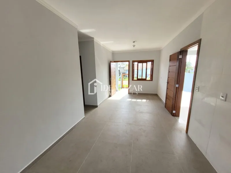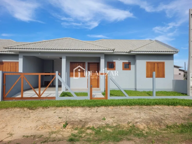 Casa nova na Praia de Figueirinha, a 450 metros do mar, dispõe de 3 dormitórios sendo 1 suíte, sala de estar/jantar, cozinha, área de serviço, 1 banheiro social, abrigo coberto para 1 carro, 91 m² de área construída, terreno medindo 12 x 12 metros.